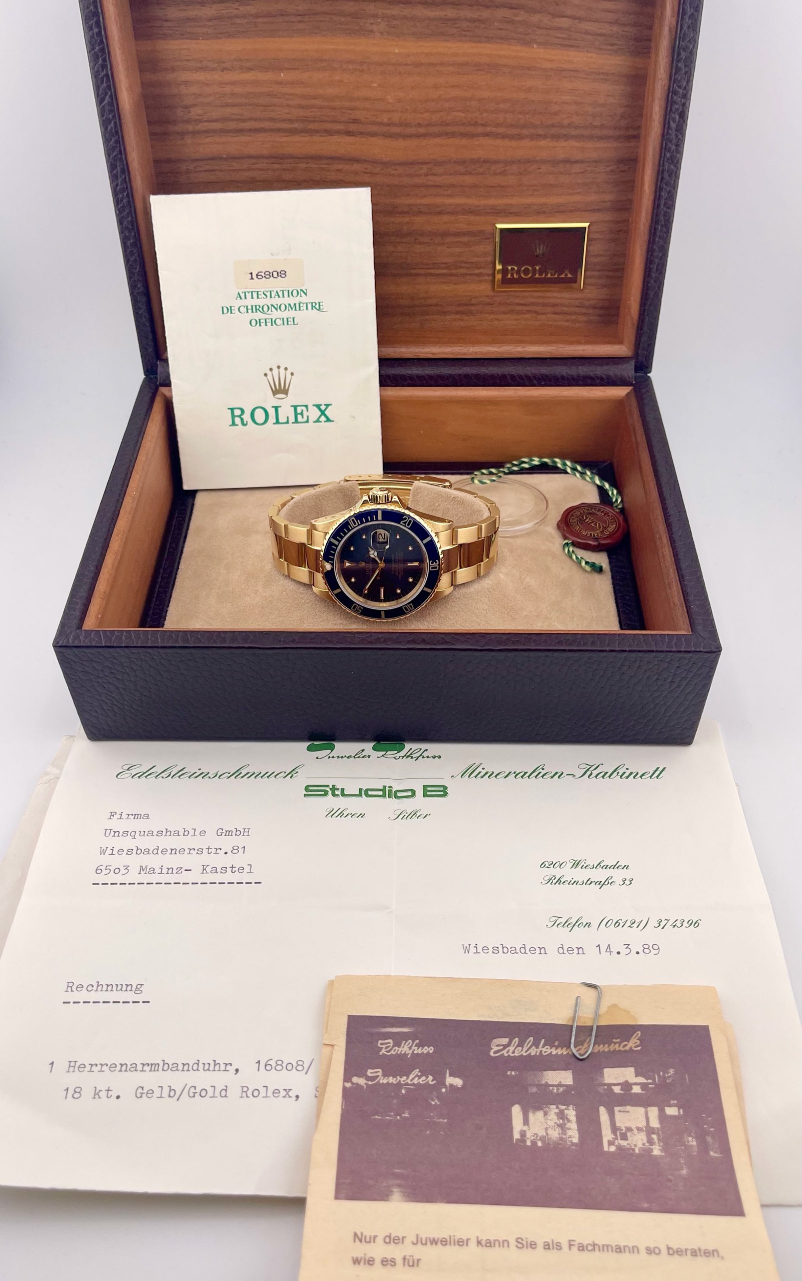 Rolex Submariner Date ref. 16808, 18K Yellow Gold, Box/Paper